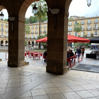 We are home now after a marathon combo of subways, flights, taxis etc. I want to add one postscript that is observations from a moment in time is San Sebastian when Sue found ourselves at a small table in an area away from the tourist mainstream. It was a late afternoon, sunny after days of consistent and heavy rains. The table faced an outdoor 'square' bounded on one side by the steps of a church and defined on the other by an arc of a cobbled 'street'. The street maybe ten feet across and the radius of the half circle about 100 feet - not a large space. As we sat in the sun, drinking our first sangria of the trip, we watched as life unfolded before us. Knots of young boys gathered, smoked, antennae out for any girls passing, people of all ages strolled, stopped to connect and moved on, young boys kicked the ever present soccer ball against a wall. We were there probably 45 minutes and must have seen hundreds flow by. At one point a steady flow of all ages, well dressed found their way to the church. The bell rang for 6:00 mass. We moved on as the sun lowered and the next day passed through the space where all was back to 'normal'.