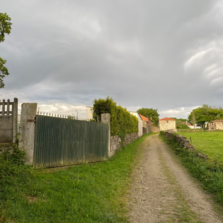The form of the 'mountains', the consistent up and down of the walk, have given way to a more tame daily experience. Small cafe / restaurants along the path are frequent. Isolated stone farm buildings and the attendant chapels have given way to small towns and longer stretches of pavement walking. Another interesting structure has shown up - the small, raised rectangular 'house' that is on top of a stone base. They often are adorned with a cross and have wood slat walls and peaked roofs. A granary?