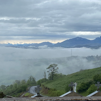 We met Angus in the breakfast room at our hotel in Oviedo, the charming capital of the Asturias region. It is the Asturias mountains this most ancient Camino walks through. Angus, like many of the folks we have met on the first four days is a walking veteran. These veterans can list the many Camino walks they have done and it seems to me the souls who do this route are older, often couples from as far away as Brazil, and looking for the more quiet, less crowded vibe this walk offers. Sue and I are relative nubes and we listen earnestly as the 'pros' debate the merits of when to drink water and how much ("not for at least the first 3 hours" Angus advises with his Irish lilt punctuated by a laugh. "Then two hours after that".) "And make sure you rest 5 kms out from your destination" we were told by Karen from Australia who had done numerous walks around the world with her husband - both doctors. "That way you enter the town fresh and don't rush to finish".